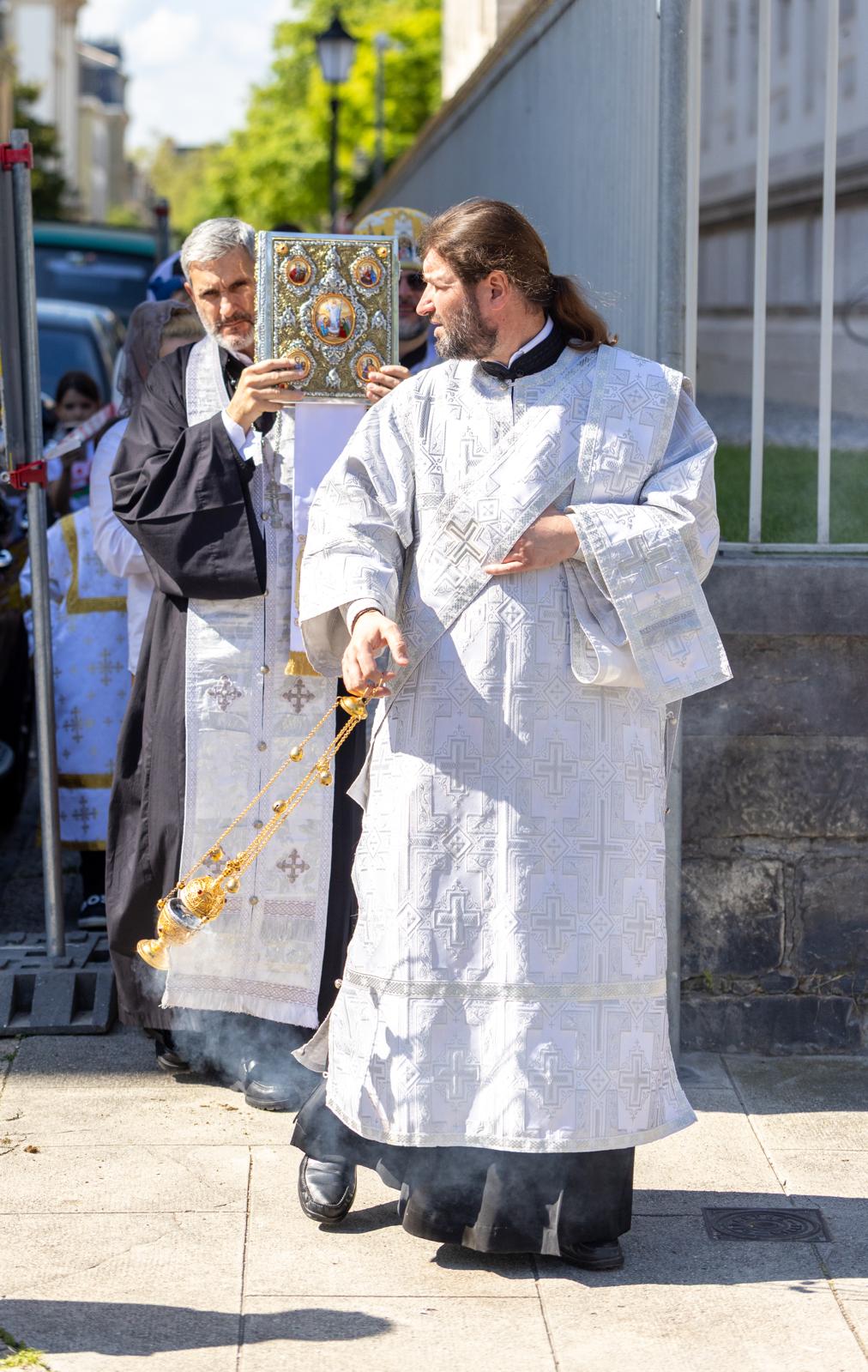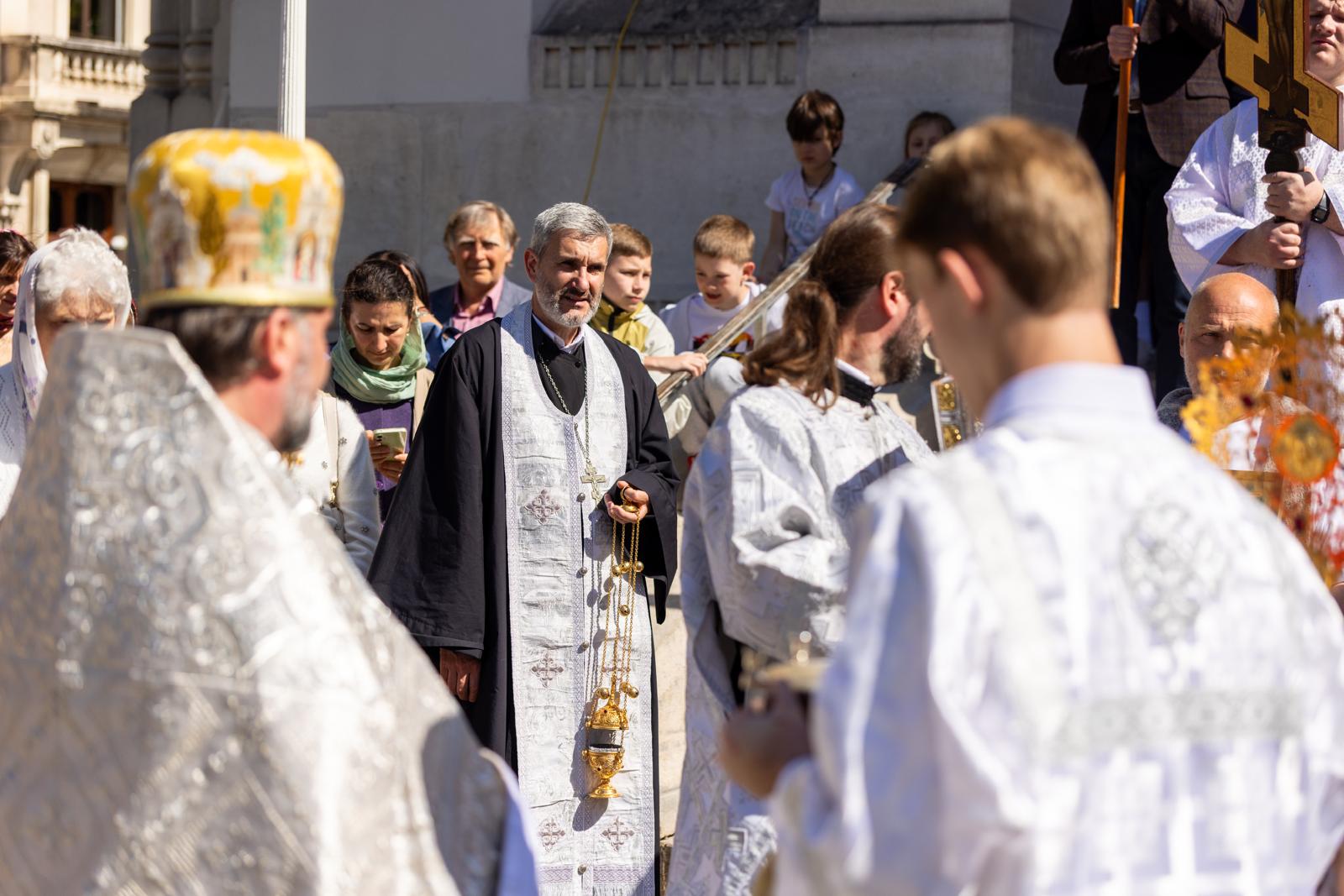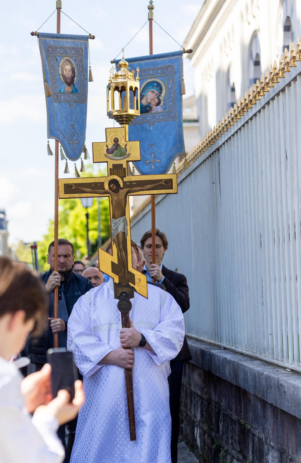 Après la Divine Liturgie, nous avons accompli une procession autour de la cathédrale, en mémoire de la joie de la Résurrection du Christ. Nous continuerons cette tradition chaque dimanche pendant plusieurs semaines, jusqu’à la fête de l’Ascension du Seigneur.