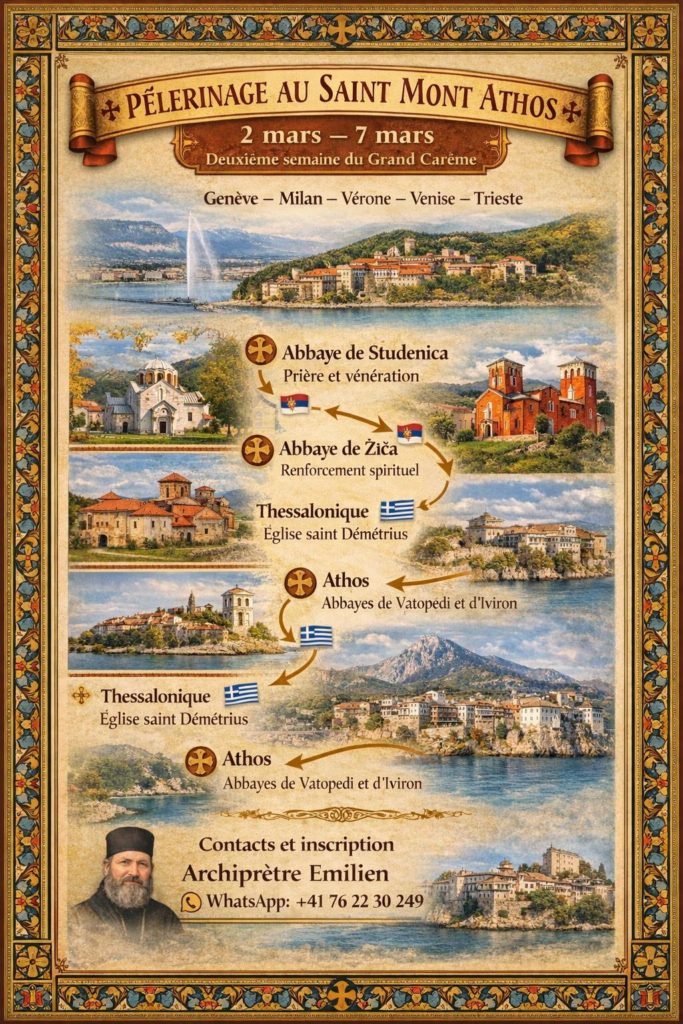 Pèlerinage au Saint Mont Athos du 2 au 7 mars 2026 28 Fév, 2026 | Important Le programme des pèlerinages en 2026