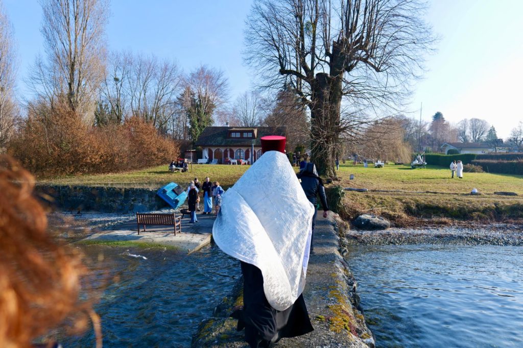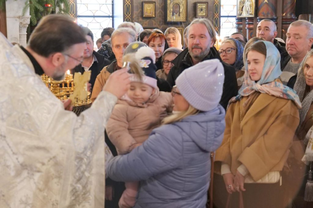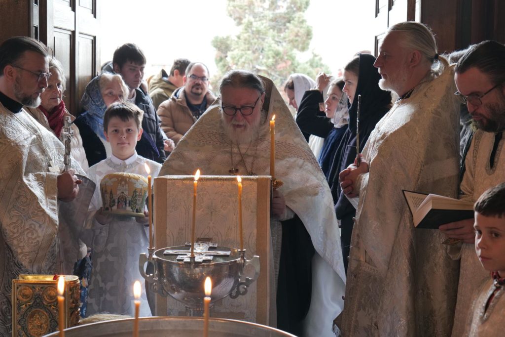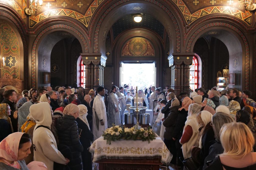 Aujourd’hui encore, nous avons béni de nouveau la Grande Eau, afin que chacun puisse prendre de l’eau bénite dans son récipient. Les prêtres ont béni chaque personne avec l’eau sainte, invoquant sur elles l’Esprit de Dieu et Sa grâce.